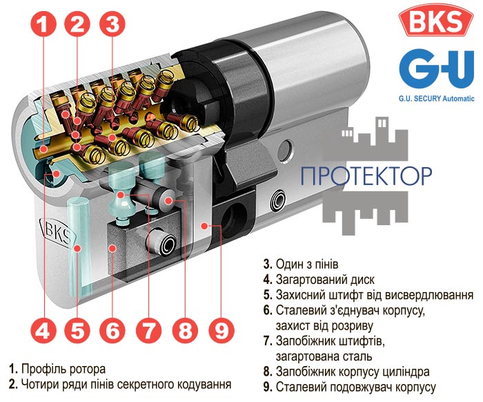 Циліндри групи компаній GU-BKS (Німеччина) надійні та якісні, хоча не дуже відомі в Одесі та Україні. Пропонований циліндр Janus (Янус) є вершиною модельного ряду компанії. Ця модель порівняна за протистоянням інтелектуальним методам розкриття з визнаними личинками EVVA 3KS, які вважаються нерозкривними — якщо вам потрібен найвищий рівень зламостійкості, то Janus безумовно буде одним з непоганих варіантів.