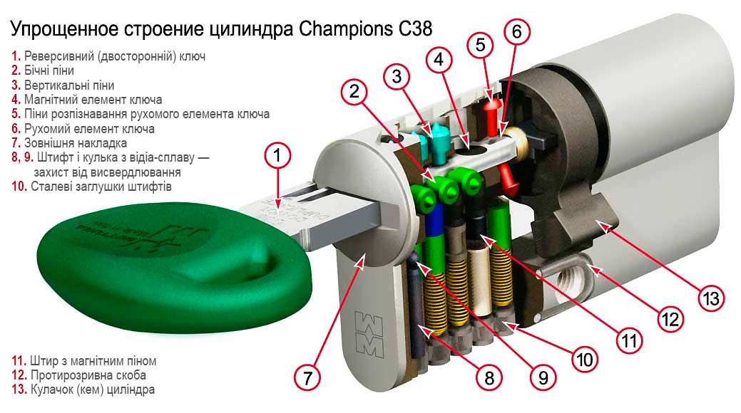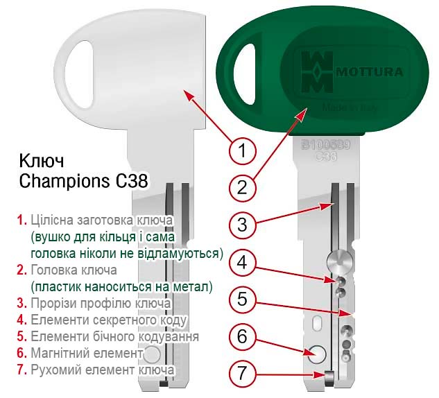 - Ключі Champions C38 є реверсивними — їх можна вставляти в проріз будь-яким боком