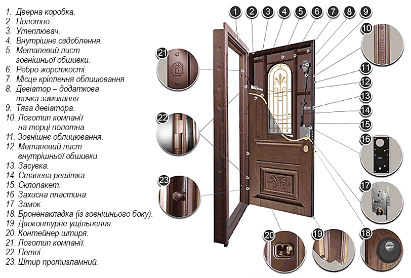 Всі вхідні двері незалежно від серій мають нижчеперелічені особливості та конструктивні рішення.