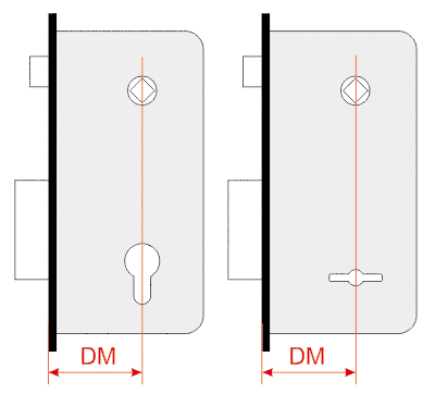 Ця величина відображає відстань між центром ключового отвору та центром отвору для ручки. Якщо замок циліндрового типу, відстань відраховується від центру ротора циліндрового механізму. Особливості міжосьової відстані ідентичні бексету — при установці замка в нові двері цей фактор не важливий, при заміні його слід враховувати обов'язково. Помилка загрожує розбіжністю отворів замка та дверного полотна по вертикалі.
