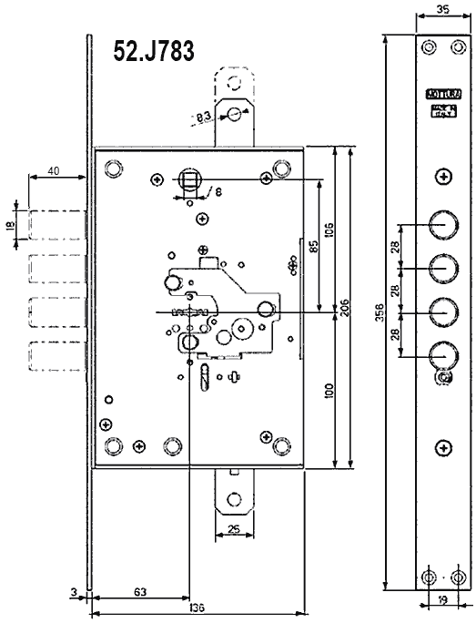Замок 52-ї серії з можливістю самостійного перекодування. Одна з останніх моделей у серії 52.783, що має найкращу зламостійкість і компактні розміри. Основне призначення — експлуатація у важких сталевих дверях та конструкціях зі сталі. Виготовлений в Італії.