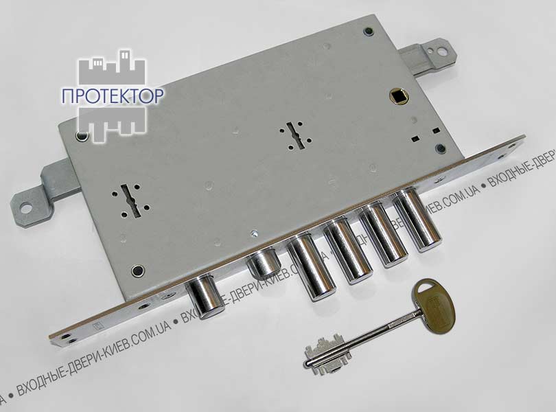 У комплект, крім замка, входить запірна планка, внутрішня та зовнішня декоративні накладки, набір із п'яти ключів.