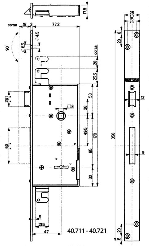 Однообертний замок 40-ї серії із сугальдним секретним механізмом. Може експлуатуватися у дверях всіх видів та інших місцях, де використання моделі буде доцільним. Виготовлений в Італії.