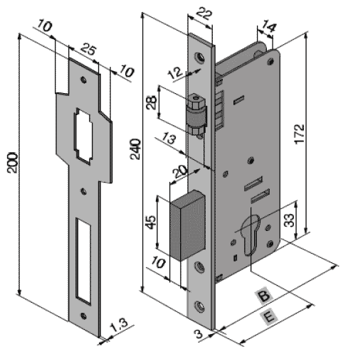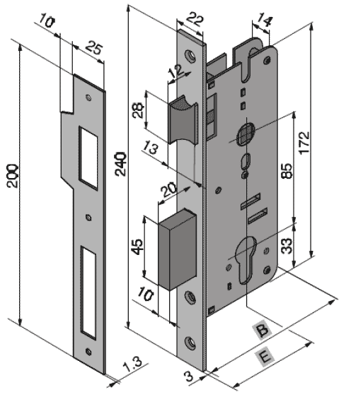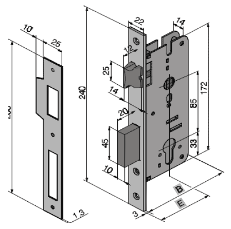 Замки з некерованою защіпкою роликового типу для дверей правого та лівого відкриття. Керування ручкою відсутнє. Технічні характеристики замка Welka 016-40